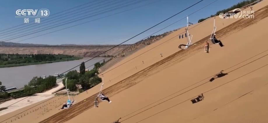 寧夏中衛(wèi)沙坡頭景區(qū),沙丘縱橫、連綿起伏,黃河、綠洲、高山和沙漠都在此相遇。眾多游客在這里體驗(yàn)沙漠沖浪、騎行、滑沙等項(xiàng)目,感受大漠馳騁的速度與激情。