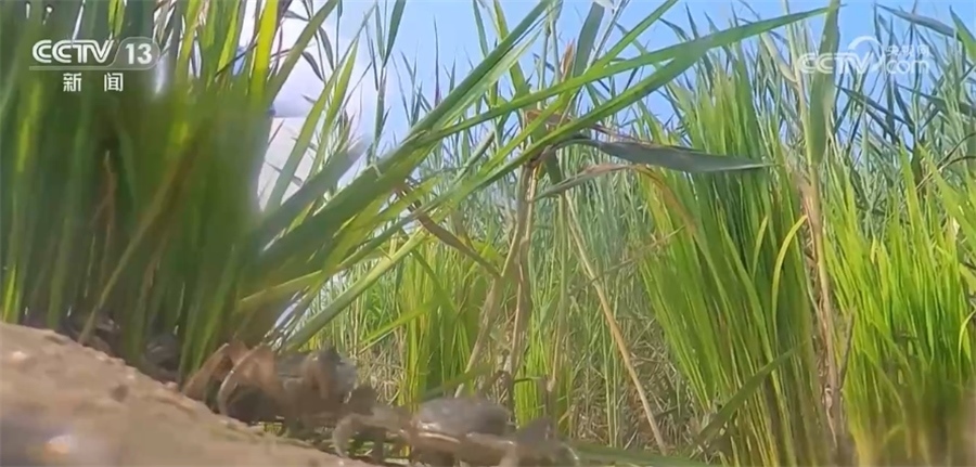 吉林省大安市圣力種植農(nóng)民專業(yè)合作社負(fù)責(zé)人 王千士:現(xiàn)在已經(jīng)脫第二次殼了,還能脫兩次殼,它脫的殼在土壤里一發(fā)酵變成含鈣的肥了,對土壤的培肥地力很有好處。另外,小蟹子在里邊爬行的過程中算是平地了,還能吃蟲吃草,對水稻和黑土地的改良很有好處。