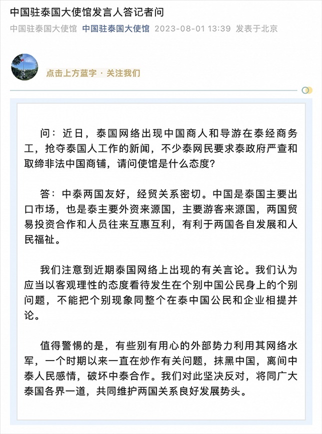·中國商人和導游在泰搶奪泰國人工作?泰網(wǎng)民要求嚴查?中使館回應(yīng)。