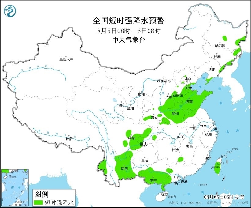 央視網(wǎng)消息:中央氣象臺(tái)8月5日06時(shí)繼續(xù)發(fā)布強(qiáng)對(duì)流天氣黃色預(yù)警,預(yù)計(jì)8月5日08時(shí)至6日08時(shí),遼寧南部、山西東南部、河北南部、山東中北部和南部、河南中北部、安徽北部、江蘇北部、浙江東部等地的部分地區(qū)將有8-10級(jí)雷暴大風(fēng)或冰雹天氣,局地風(fēng)力可達(dá)11級(jí);黑龍江東部、吉林東部、遼寧南部、陜西中南部、山西中南部、河北中南部、北京西南部、天津中南部、山東、河南、安徽北部、江蘇北部、湖北西北部、湖南東南部、四川中東部和南部、重慶西部、云南中東部和西南部、廣西中南部、廣東西南部、臺(tái)灣島等地的部分地區(qū)將有短時(shí)強(qiáng)降水天氣,小時(shí)雨量30-60毫米,局地可達(dá)70毫米以上。