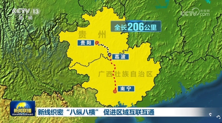 貴南高鐵連接貴陽(yáng)和南寧,是“八縱八橫”高鐵網(wǎng)包頭至??谕ǖ赖闹匾M成部分。正線全長(zhǎng)482公里,是黔桂兩地首條設(shè)計(jì)時(shí)速達(dá)350公里的高速鐵路。此次開通的貴陽(yáng)至荔波段,全長(zhǎng)206公里,貴陽(yáng)至荔波最快只需57分鐘。