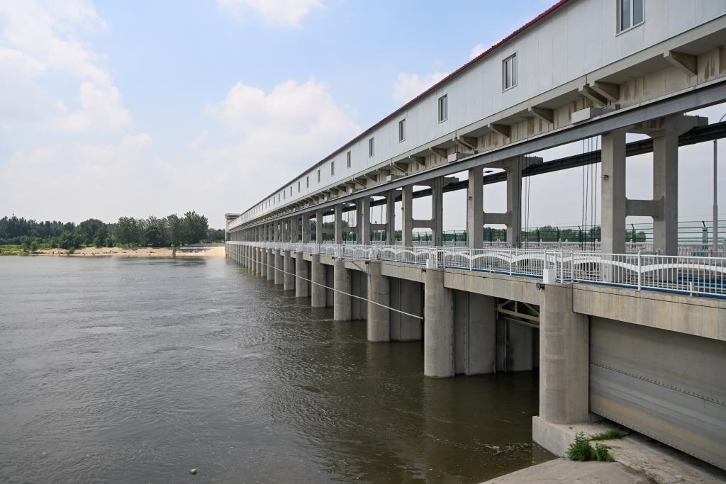8月2日,上游來水經(jīng)天津獨流減河進洪閘后流入獨流減河。新華社記者孫凡越 攝