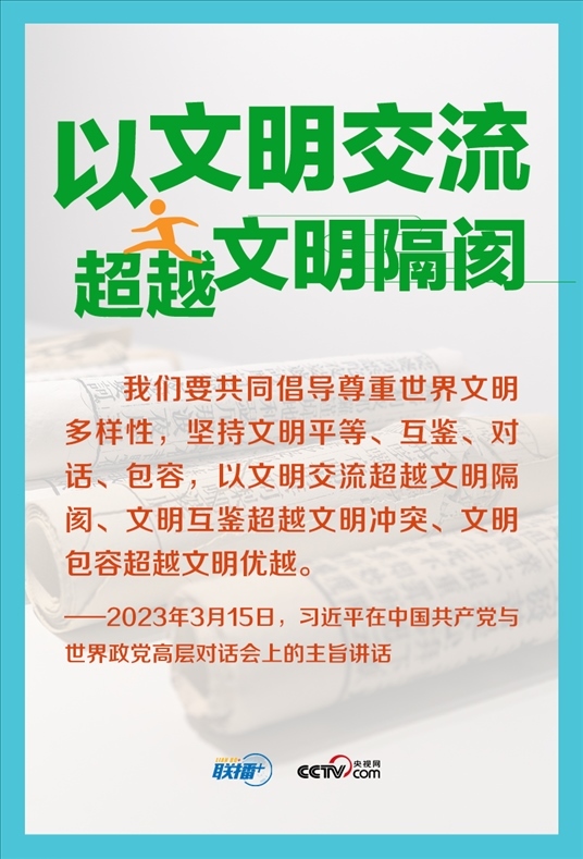文明因交流而多彩,文明因互鑒而豐富。今年3月,在中國共產(chǎn)黨與世界政黨高層對話會上,習(xí)近平主席首次提出全球文明倡議,主張“共同倡導(dǎo)尊重世界文明多樣性”,為推動文明交流互鑒、促進(jìn)人類文明進(jìn)步提供中國方案。