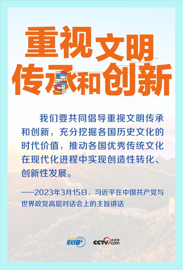 重視文明傳承和創(chuàng)新,是文明交流互鑒的動(dòng)力源泉。2023年年初,習(xí)近平總書記在中國共產(chǎn)黨與世界政黨高層對話會(huì)上首次提出全球文明倡議,這是繼全球發(fā)展倡議、全球安全倡議后,新時(shí)代中國為國際社會(huì)提供的新的國際公共產(chǎn)品。