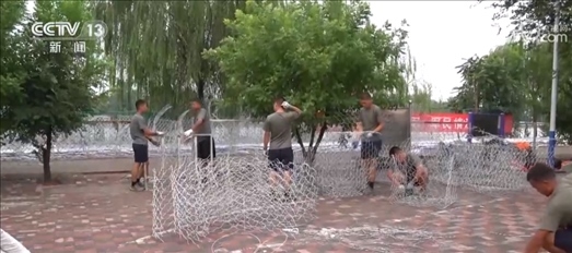 針對(duì)當(dāng)前及未來(lái)幾天天津氣象變化,有效應(yīng)對(duì)大清河兩側(cè)堤壩可能出現(xiàn)的險(xiǎn)情,官兵們采取動(dòng)態(tài)輪換的方式,除了巡堤排險(xiǎn)就是制作防洪石籠。像這樣40米一卷的鉛絲網(wǎng)片,他們已經(jīng)用了幾百卷,做好的石籠有500多個(gè)。