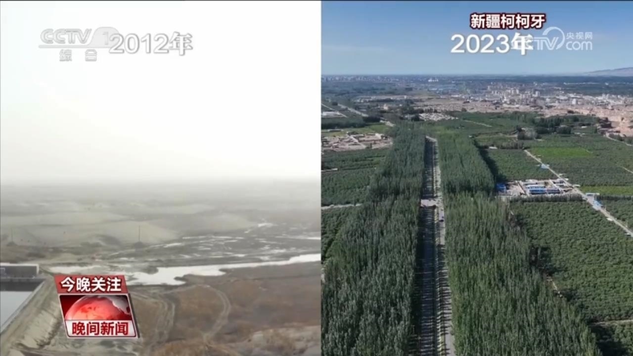 新疆阿克蘇地區(qū)的柯柯牙曾經是南疆風沙策源地之一。30年來,面對柯柯牙缺水和土壤鹽堿含量高的情況,當?shù)叵到y(tǒng)推進山水林田湖草沙一體化保護和系統(tǒng)治理,柯柯牙綠化工程造林共計120.26萬畝,累計栽植樹木1400萬株,荒漠變?yōu)榱趾#罱K在貧瘠的戈壁荒漠中,造就了一道“綠色長城”。
