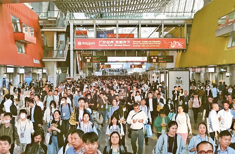 第133屆中國進(jìn)出口商品交易會(huì)(廣交會(huì))線下展于2023年4月15日至5月5日分3期舉辦,同時(shí)線上平臺全年常態(tài)化運(yùn)營。本屆廣交會(huì)展覽面積、參展企業(yè)數(shù)量均創(chuàng)歷史新高,吸引220多個(gè)國家和地區(qū)的數(shù)十萬采購商報(bào)名參會(huì)。圖為4月26日拍攝的廣交會(huì)現(xiàn)場。 中新社記者 陳楚紅/攝