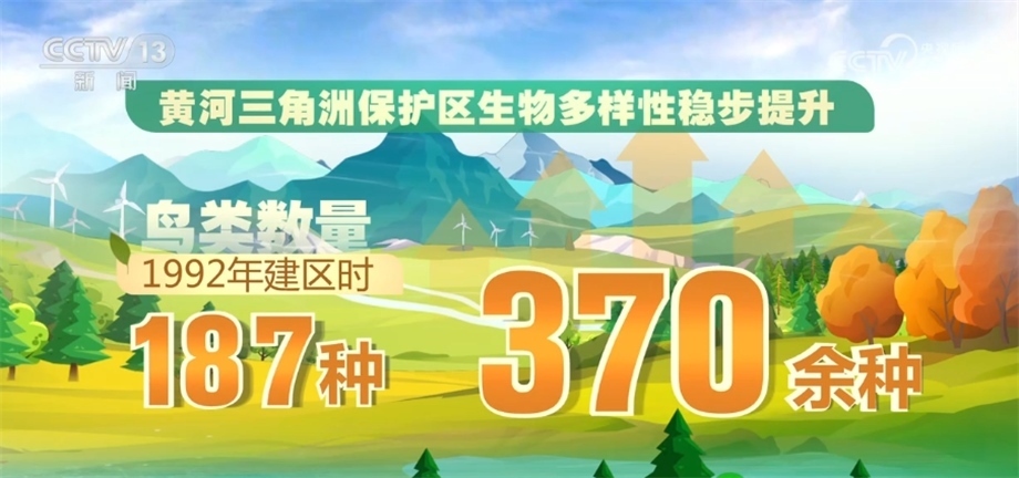 黃河干流在2022年首次全線達到Ⅱ類水質,隨著黃河流域生態(tài)保護和高質量發(fā)展的不斷推進,黃河流域植被覆蓋度提升,“綠線”向西移動約300公里。目前,黃河三角洲保護區(qū)生物多樣性穩(wěn)步提升,鳥類數量由1992年建區(qū)時的187種增加到了現在的370余種。