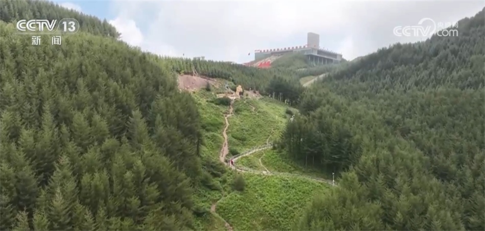 總臺(tái)記者 許國飛:從六盤山的腳下要想去往山頂?shù)募o(jì)念館,一共有兩種方式,第一種方式是乘坐擺渡車上去,第二種方式就是從我腳下的這條“紅軍小道”步行上去,這條小道長度一共是2.5公里,有65%以上的游客選擇了步行上去。