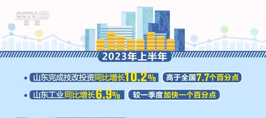 2023年上半年,山東完成技改投資同比增長10.2%,高于全國7.7個(gè)百分點(diǎn),在此拉動(dòng)下,全省工業(yè)同比增長6.9%,較一季度加快一個(gè)百分點(diǎn)。