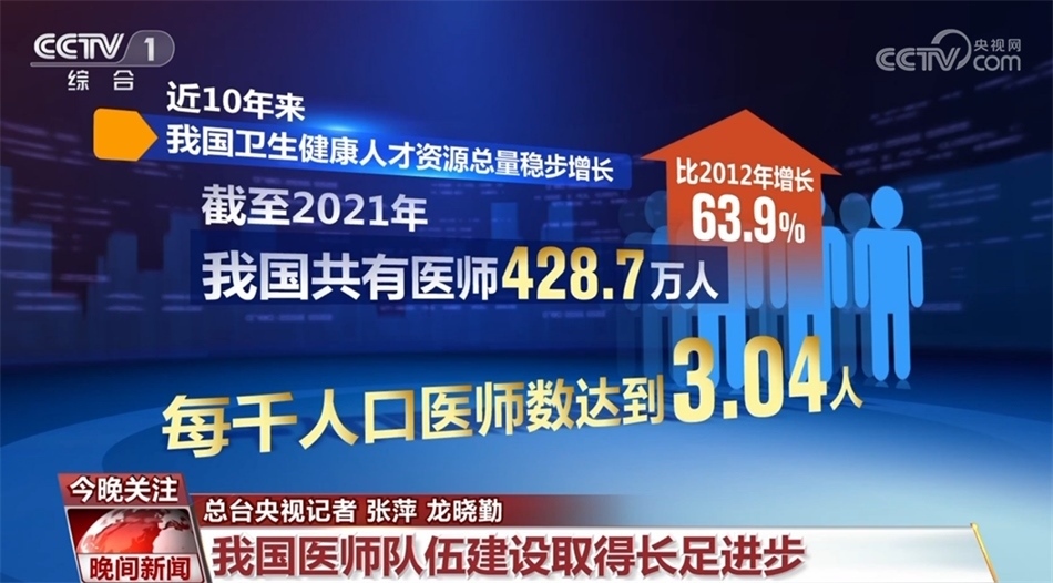 國家衛(wèi)生健康委相關(guān)負(fù)責(zé)人介紹,近10年來,我國衛(wèi)生健康人才資源總量穩(wěn)步增長,截至2021年,我國共有醫(yī)師428.7萬人,比2012年增長了63.9%,每千人口醫(yī)師數(shù)達(dá)到3.04 人。到2025年,我國每千人口醫(yī)師數(shù)將達(dá)到3.2人。