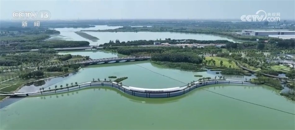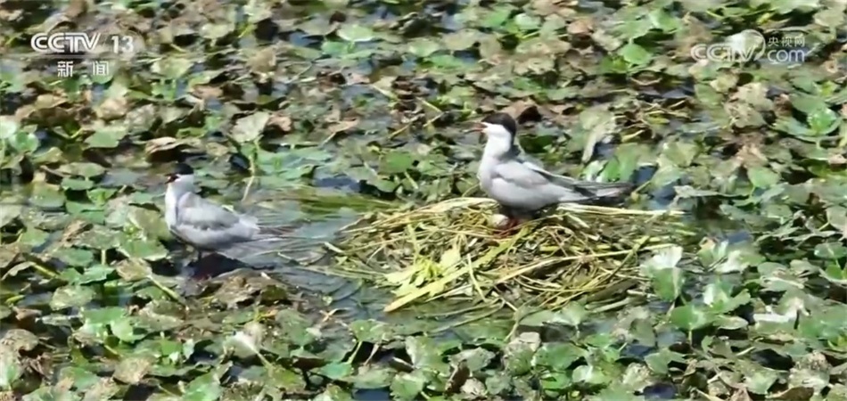 比如,兩地工作人員實現(xiàn)了聯(lián)合巡河、管護、治理。元蕩湖生態(tài)岸線的相關建設,包括我所在的這個公園和步行橋也是兩地統(tǒng)一審批、接力建設起來的。目前,元蕩湖水質已經達到國家考核目標,生態(tài)岸線占比超過80%。在湖心的位置有一處水草聚集區(qū)域,船是不會靠近的,這是人為劃定的水上鳥兒的保育區(qū),能看見不少水鳥在那里嬉戲飛翔。鏡頭拉近,有的鳥兒已經在這里筑巢產卵,把家安在了元蕩湖,水質好不好,鳥兒最有發(fā)言權?,F(xiàn)在,元蕩湖在水系連通、河道清障、岸坡整治、水源涵養(yǎng)等方面實現(xiàn)了統(tǒng)一推進。
