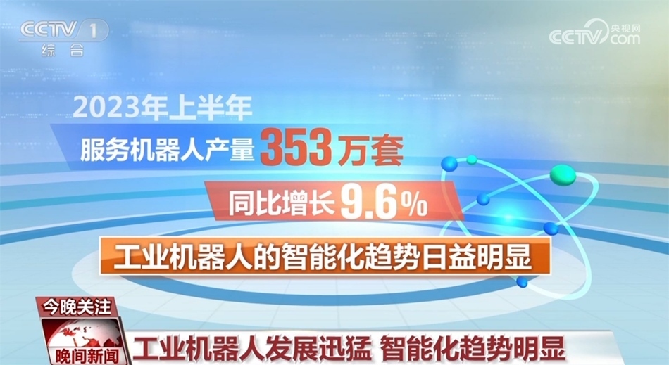據(jù)了解,我國工業(yè)機(jī)器人銷量已占全球的一半以上,連續(xù)10年居世界首位。2023年上半年,工業(yè)機(jī)器人產(chǎn)量達(dá)到了22.2萬套,同比增長5.4%,服務(wù)機(jī)器人產(chǎn)量353萬套,同比增長9.6%。同時(shí),工業(yè)機(jī)器人的智能化趨勢(shì)日益明顯。