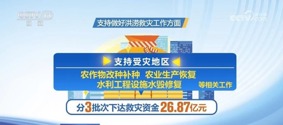在支持做好洪澇救災(zāi)工作方面,分3批次下達救災(zāi)資金26.87億元,支持受災(zāi)地區(qū)開展農(nóng)作物改種補種、農(nóng)業(yè)生產(chǎn)恢復(fù)、水利工程設(shè)施水毀修復(fù)等相關(guān)工作。