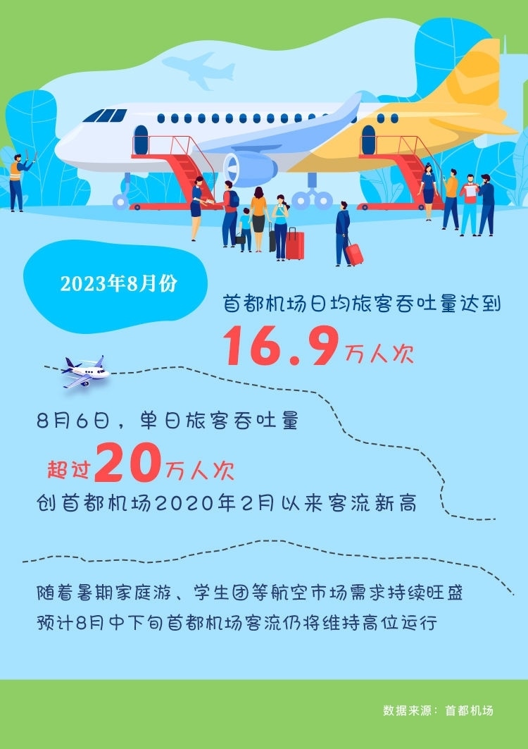 全國各大機場內(nèi)外也一片熙熙攘攘的繁忙畫面。首都機場有關負責人介紹,暑運以來,首都機場航班量和旅客量同樣屢創(chuàng)新高。其中8月6日,單日旅客吞吐量超過20萬人次,創(chuàng)首都機場2020年2月以來客流新高。