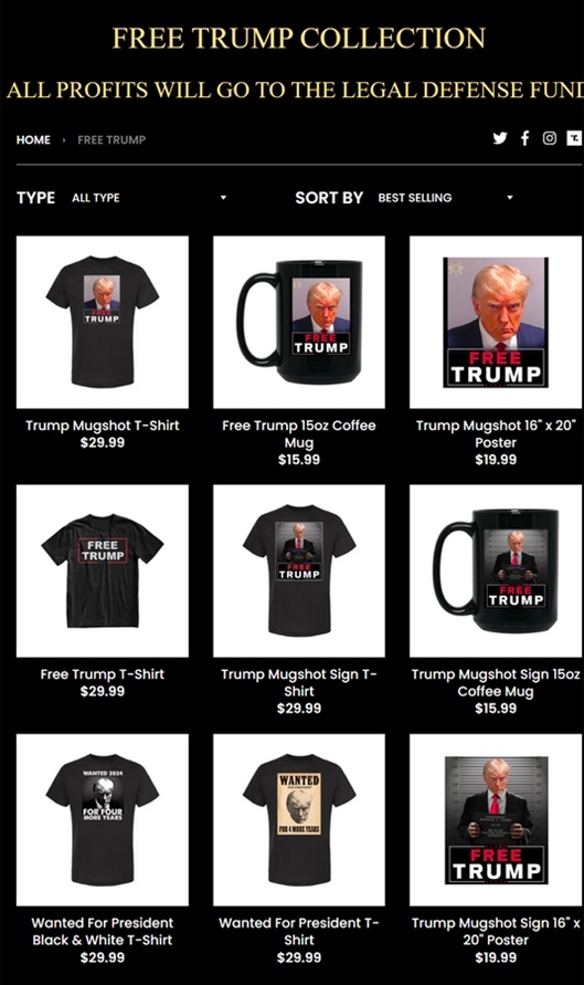 ·為競(jìng)選造勢(shì)?高調(diào)投案后,特朗普“監(jiān)獄大頭照”周邊產(chǎn)品開(kāi)售。