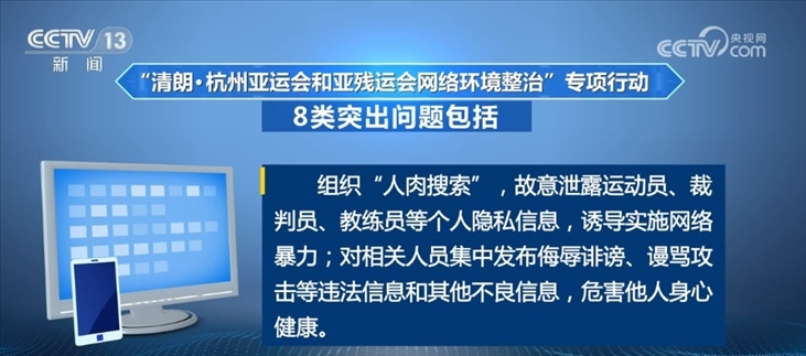 央視網(wǎng)消息:記者昨天(8月28日)從中央網(wǎng)信辦獲悉,為做好杭州亞運(yùn)會(huì)和亞殘運(yùn)會(huì)保障工作,決定自8月28日至10月29日開(kāi)展“清朗·杭州亞運(yùn)會(huì)和亞殘運(yùn)會(huì)網(wǎng)絡(luò)環(huán)境整治”專(zhuān)項(xiàng)行動(dòng)。專(zhuān)項(xiàng)行動(dòng)將圍繞賽事舉辦,集中整治散布虛假信息、片面、歪曲傳播突發(fā)事件信息等8類(lèi)突出問(wèn)題。