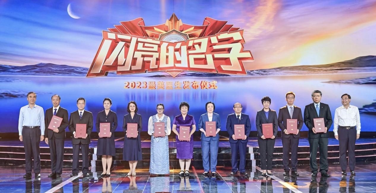 圖:中共中央宣傳部分管日常工作的副部長(zhǎng)、文化和旅游部部長(zhǎng) 胡和平(右一);國(guó)家衛(wèi)生健康委副主任 李斌(左一)為2023年“最美醫(yī)生”代表頒發(fā)證書(shū)。