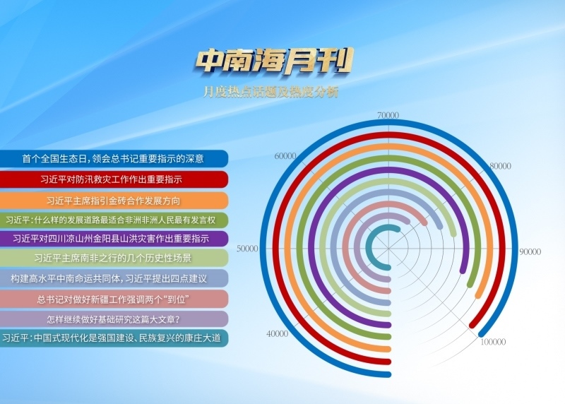 中國式現(xiàn)代化是強(qiáng)國建設(shè)、民族復(fù)興的康莊大道,康莊大道并不等于一馬平川。就像習(xí)近平總書記所強(qiáng)調(diào)的,“要把中國式現(xiàn)代化5個(gè)方面的中國特色變?yōu)槌晒?shí)踐,把鮮明特色變成獨(dú)特優(yōu)勢,需要付出艱巨努力”。央視網(wǎng)“智聞”系統(tǒng)提取分析8月全網(wǎng)時(shí)政新聞熱點(diǎn)顯示,總書記對推進(jìn)中國式現(xiàn)代化的最新部署吸引全網(wǎng)目光。