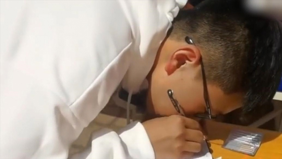 8月30日,山東中醫(yī)藥大學(xué)針灸推拿學(xué)院迎來一個特殊的新生。因?yàn)榍嗌倌挈S斑變性,欒新業(yè)從初二開始就只能借助放大鏡讀書。今年他以562分的成績考進(jìn)山東中醫(yī)藥大學(xué)。