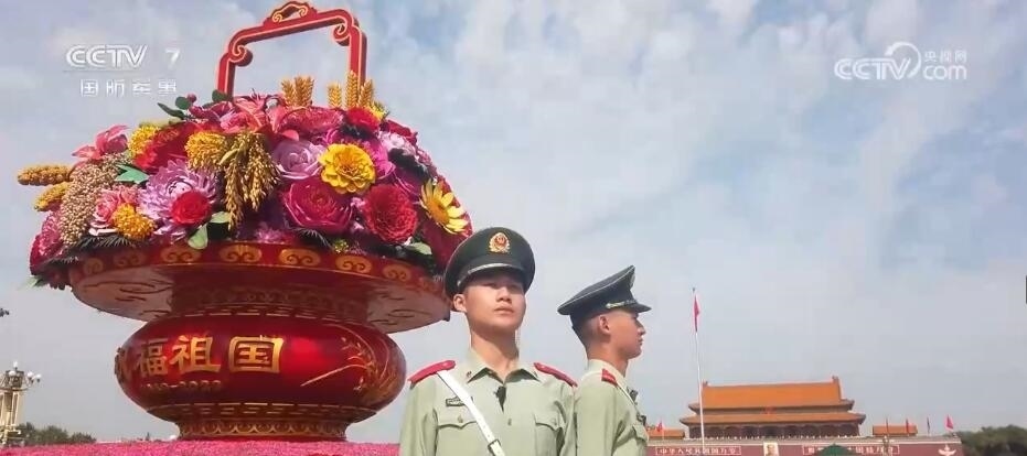 在北京,天安門廣場(chǎng)內(nèi)祝福祖國(guó)的巨型花籃吸引著眾多游客前來觀賞拍攝。武警官兵在完成好巡邏執(zhí)勤任務(wù)的同時(shí),協(xié)助工作人員進(jìn)行游客疏導(dǎo)也成為一項(xiàng)重要的工作。