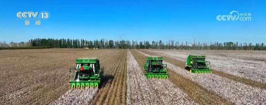 新疆瑪納斯縣74萬畝棉花成熟 采棉機助力收獲