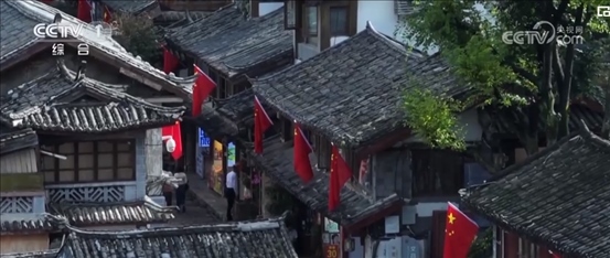 云南麗江:古城青磚黛瓦 國旗迎風(fēng)飄揚(yáng)