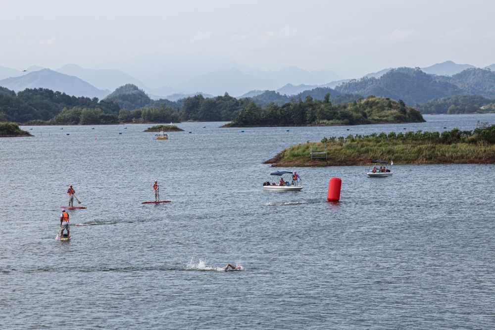 杭州主城區(qū)西南方約200公里,淳安縣千島湖秀水畔的界首鄉(xiāng),水域廣闊、港灣曲折,沿線騎行、徒步的游客絡(luò)繹不絕。杭州亞運會自行車、鐵人三項等比賽在這里如火如荼地展開。