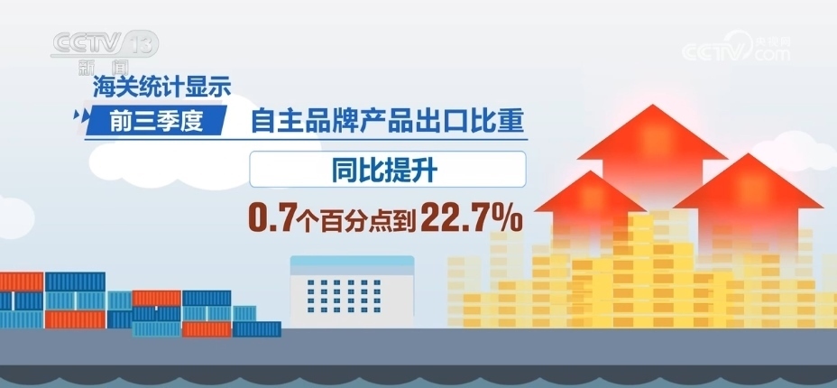 海關(guān)統(tǒng)計顯示,前三季度,我國民營企業(yè)月度進(jìn)出口增速高于整體,自主品牌產(chǎn)品出口比重同比提升0.7個百分點到22.7%。
