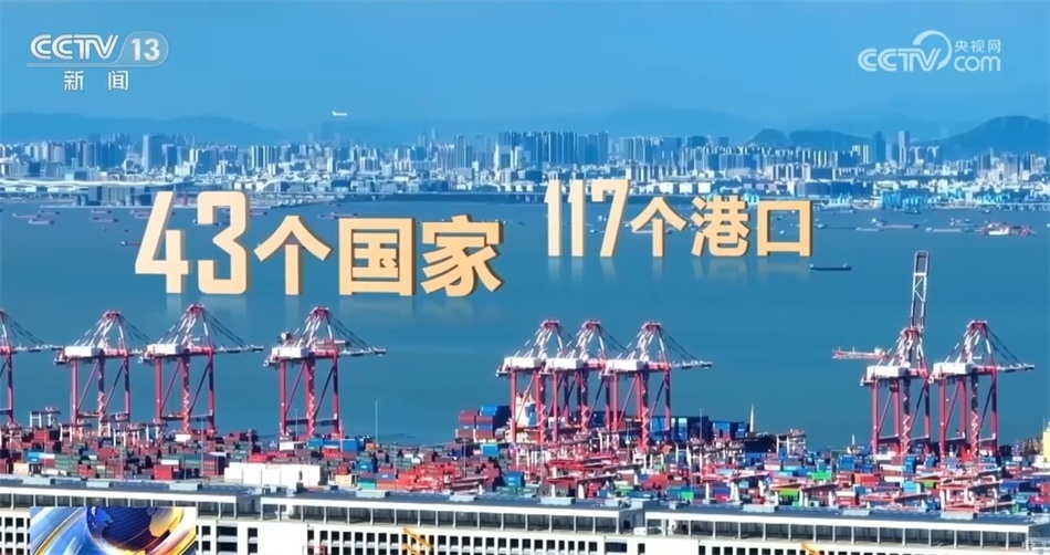 向大海,這是2013年時(shí)中國(guó)與共建“一帶一路”國(guó)家間的水運(yùn)航線。十年間,共建“一帶一路”國(guó)家間的水運(yùn)航線數(shù)量翻了一番,新增航線達(dá)到了1344條,穿梭其中的貨船增加150%。“絲路海運(yùn)”航線已通達(dá)全球43個(gè)國(guó)家的117個(gè)港口,織出了一張聯(lián)通世界的貿(mào)易流動(dòng)網(wǎng)絡(luò)。