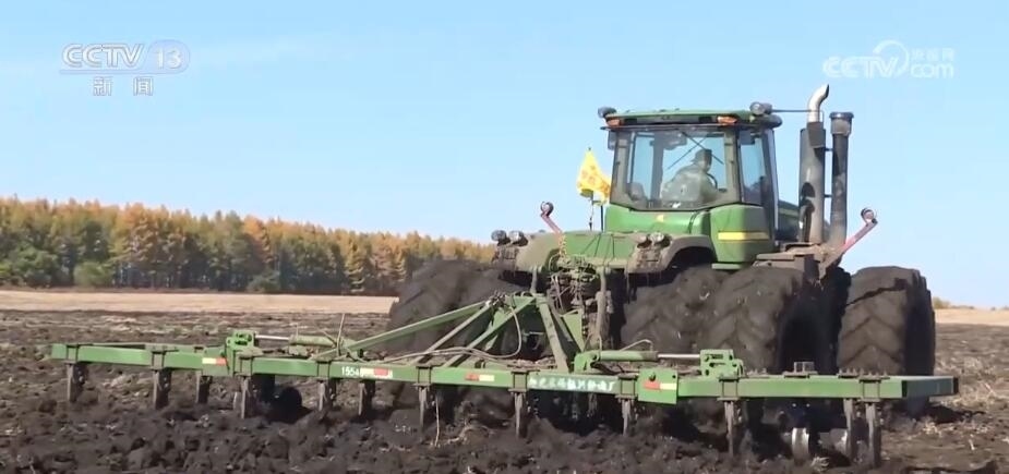 北大荒集團趙光農(nóng)場有限公司第九管理區(qū)副主任 周磊:半鏈軌過去之后,不破壞壟型,不誤車,能加快秋收的作業(yè)速度。我們預計在(10月)18日大豆全部收獲結束。