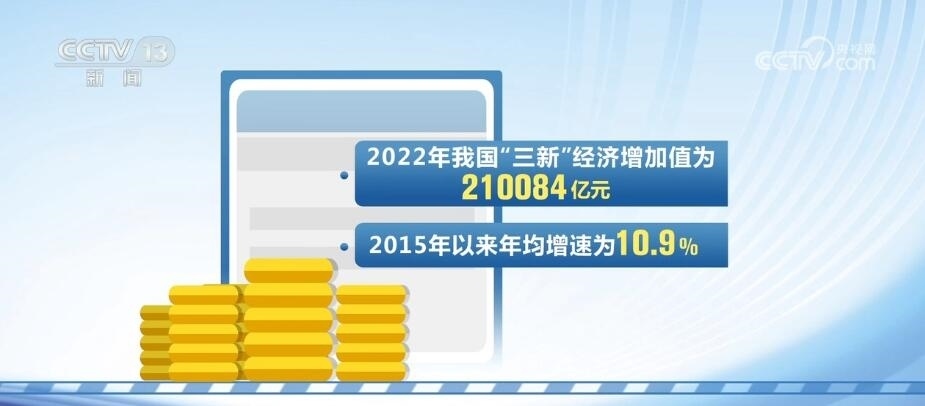 2022年,我國(guó)“三新”經(jīng)濟(jì)增加值為210084億元,2015年以來(lái)年均增速為10.9%,比同期GDP現(xiàn)價(jià)增速高2.5個(gè)百分點(diǎn),相當(dāng)于GDP的比重為17.36%?!叭隆苯?jīng)濟(jì)不斷發(fā)展,已成為帶動(dòng)經(jīng)濟(jì)轉(zhuǎn)型升級(jí)、增強(qiáng)經(jīng)濟(jì)活力的重要力量。