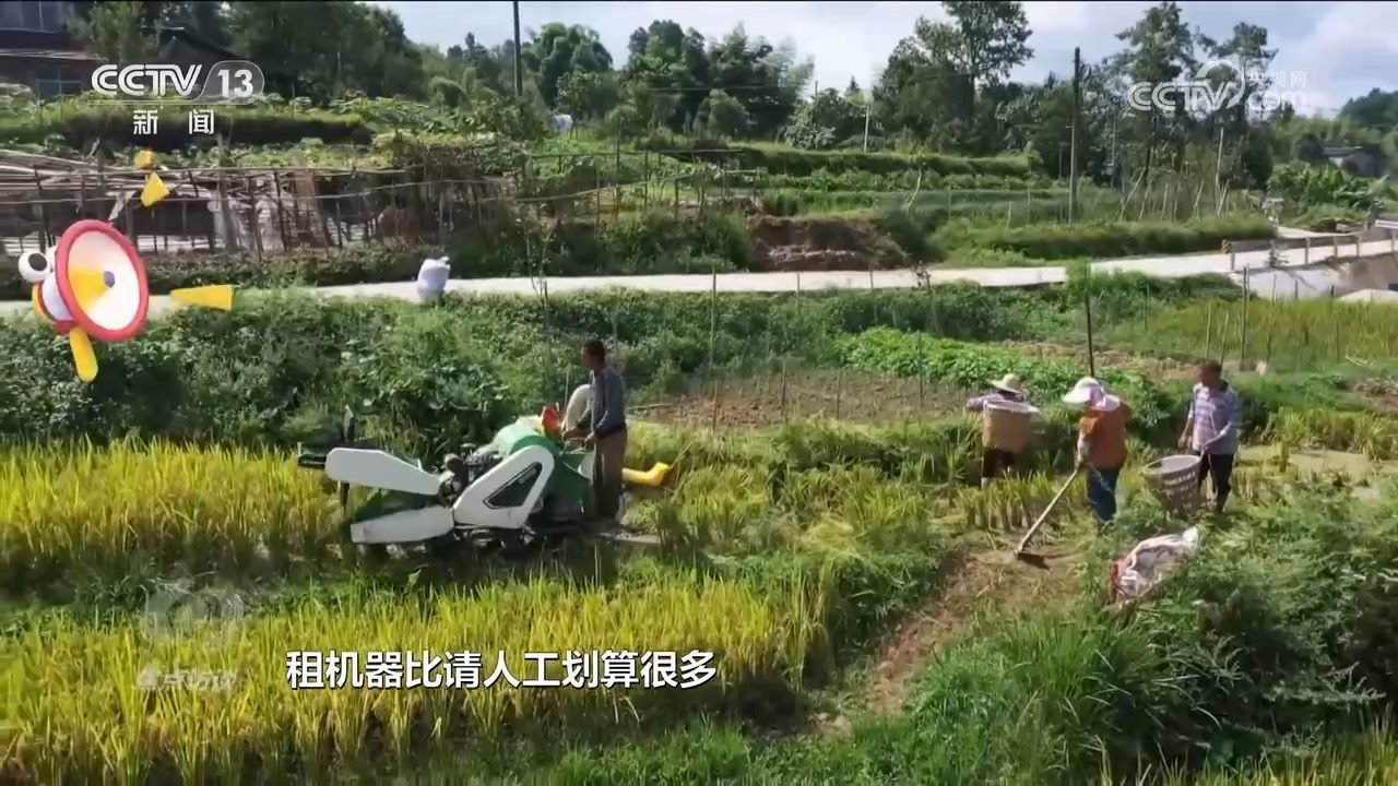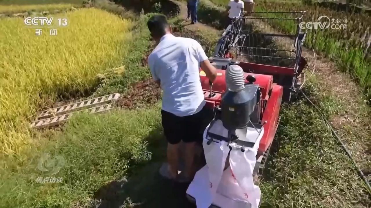 重慶市江津區(qū)四屏鎮(zhèn)四面村村民岳鳳偉:“我是重慶市江津區(qū)四屏鎮(zhèn)四面村的村民,我叫岳鳳偉。我們這邊的地形地貌和北方的不一樣,我們是山地、丘陵,坡度很大,收割的難度也很大。不過今年我一點都不用擔(dān)心了,這個機器連田坎邊緣的水稻都可以收割,一點不會浪費。租金是一天800元,8畝地不到一天就可以收割完,如果請人來收,一畝地成本就在300塊左右了,8畝地大概需要2400元,租機器比請人工劃算很多。”