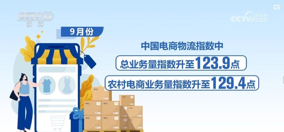 數(shù)據(jù)顯示,今年前三季度,線上電商物流保持旺盛活力,特別是進入9月份,農(nóng)村以及全領(lǐng)域電商物流需求穩(wěn)步回升。9月份,中國電商物流指數(shù)中的總業(yè)務(wù)量指數(shù)、農(nóng)村電商業(yè)務(wù)量指數(shù)分別升至123.9點、129.4點的年內(nèi)較高水平。