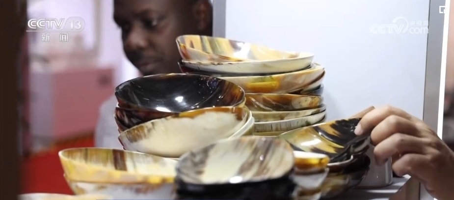 不僅是“回頭客”收獲滿滿,“頭回客”烏干達(dá)商人蒂莫西表示感到十分驚喜。他是第一次來(lái)參展,只拿到了3層貨架的展位。但是,來(lái)自烏干達(dá)的牛角梳等牛角手工藝品,吸引了不少訪客駐足詢(xún)問(wèn)。