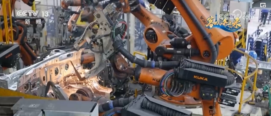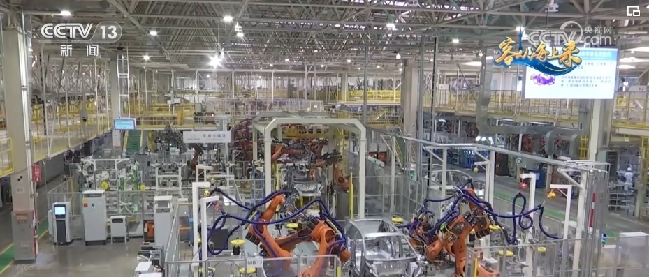 總臺央視記者 高媛:平均每1分鐘就會下線一輛車,在這個智慧工廠里,有1000多臺柔性機器人實現(xiàn)焊接100%自動化,這樣的智能制造能力就是它高效的“密碼”。