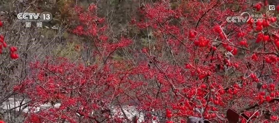 山林間,成片的山茱萸樹在褪去枯葉后,紅彤彤的果實(shí)便顯露出來(lái),密密麻麻綴滿枝頭。種植戶們穿梭林間,忙著采摘。