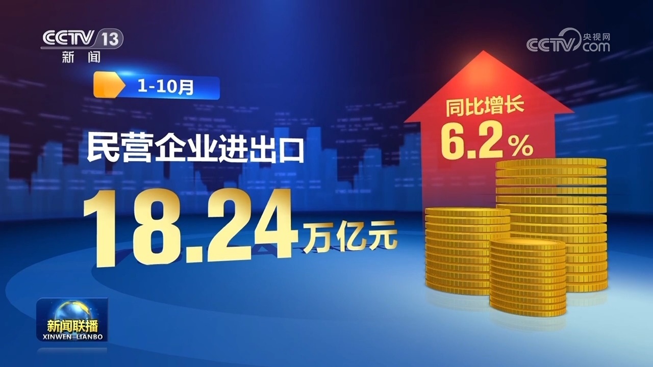 新動(dòng)能帶動(dòng)作用持續(xù)釋放,推動(dòng)外貿(mào)領(lǐng)域積極因素累積增多。前三季度跨境電商進(jìn)出口額達(dá)1.7萬(wàn)億元,同比增長(zhǎng)14.4%,保持較快增長(zhǎng)。貿(mào)易結(jié)構(gòu)優(yōu)化升級(jí),1—10月,我國(guó)一般貿(mào)易進(jìn)出口增長(zhǎng)1.8%,占我國(guó)外貿(mào)總值的64.9%,比去年同期提升1.1個(gè)百分點(diǎn)。民營(yíng)企業(yè)進(jìn)出口18.24萬(wàn)億元,同比增長(zhǎng)6.2%,成為穩(wěn)外貿(mào)主力軍。
