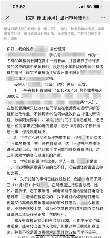 ·溫州一小學(xué)老師被舉報開展有償答疑,當(dāng)?shù)亟逃郑撼闪0嗾{(diào)查取證。