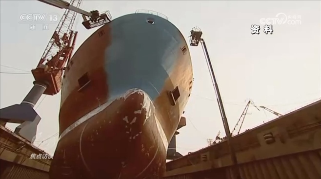 周清華:“因為要兼顧很多碼頭,對尺度的要求,在主尺度不變的情況下,通過技術創(chuàng)新導致艙容更加大了,讓船東可以運更多的貨,所以‘大’是有技術含量的,也是充滿智慧的?!?/p>