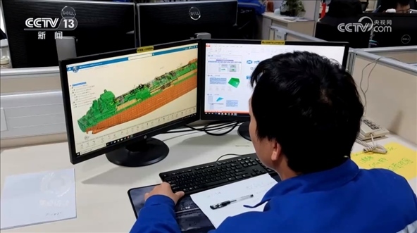 精益求精是確保產(chǎn)品質(zhì)量的生命線,科技創(chuàng)新則是推動產(chǎn)業(yè)進步的動力源。2016年,江南造船成立了江南研究院,利用數(shù)字技術來提高設計和生產(chǎn)中的效率。比如這套VR系統(tǒng)就可以模擬船艙內(nèi)的真實情況,讓設計師、建造團隊和船東公司可以據(jù)此共同討論設計是否合理,這極大地降低了成本、提高了效率。