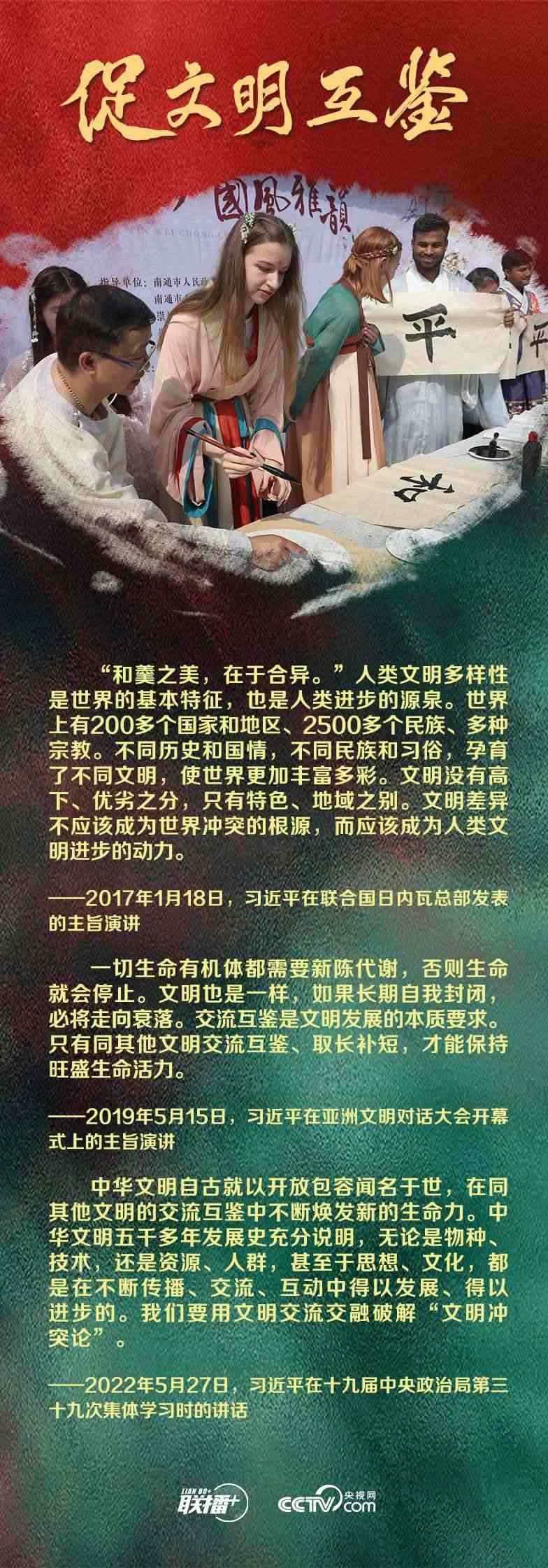 2023年3月15日,習(xí)近平主席在中國(guó)共產(chǎn)黨與世界政黨高層對(duì)話會(huì)上,提出了全球文明倡議。他指出,在各國(guó)前途命運(yùn)緊密相連的今天,不同文明包容共存、交流互鑒,在推動(dòng)人類社會(huì)現(xiàn)代化進(jìn)程、繁榮世界文明百花園中具有不可替代的作用。