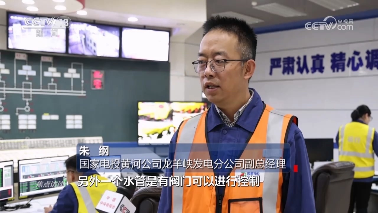 國家電投黃河公司龍羊峽發(fā)電分公司副總經(jīng)理朱綱:“一個水池有兩個進水管,一個水管沒有閥門不能控制,另外一個水管有閥門可以進行控制。這時候控制能調節(jié)、有閥門的水管來進行調節(jié),使得總入水池里的水始終是恒定的?!?/p>