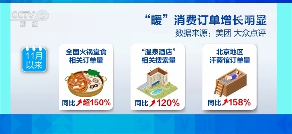 除了御寒用品熱銷外,火鍋店、汗蒸館、溫泉等場所也迎來了消費熱潮,繼續(xù)來看記者的探訪。?
