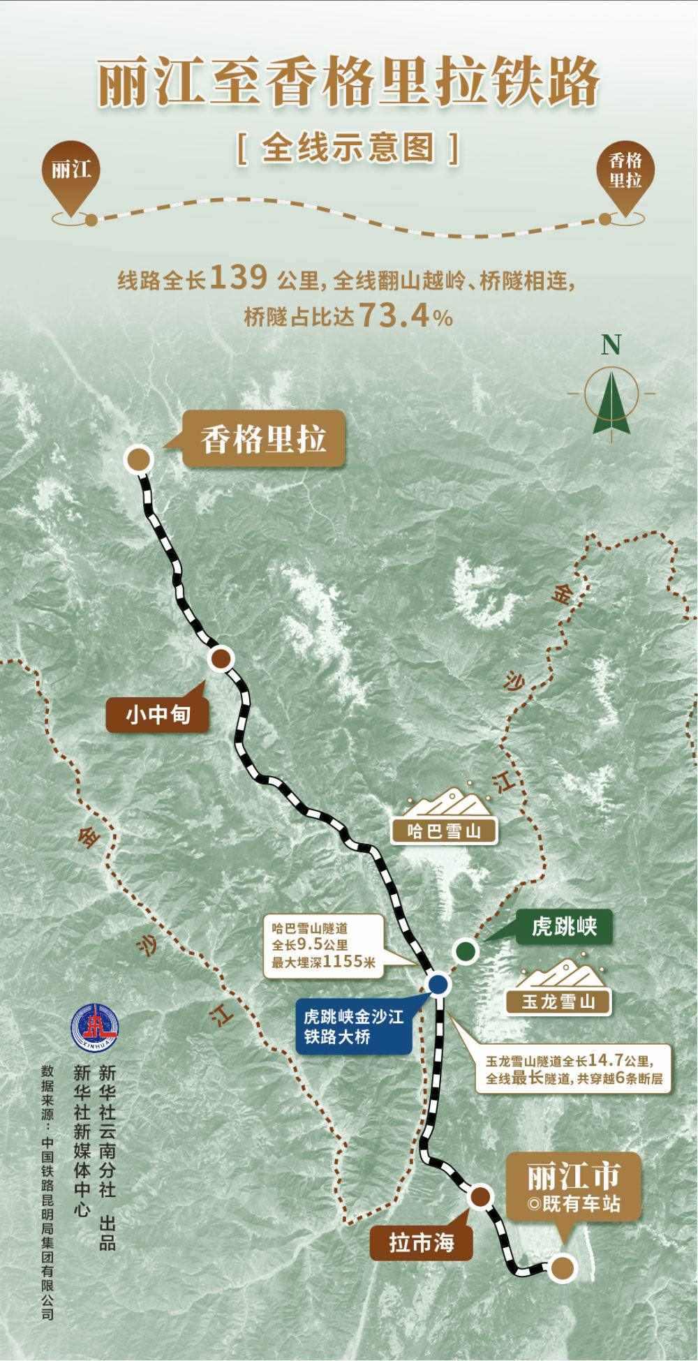 2023年11月26日,麗江至香格里拉鐵路正式開通運營,鐵路全長139公里,設計時速140公里,為國家I級單線電氣化鐵路,兩地間最快1小時18分可達。