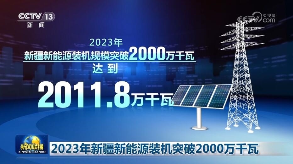 央視網(wǎng)消息(新聞聯(lián)播):國家電網(wǎng)最新數(shù)據(jù)顯示,2023年,新疆新能源裝機規(guī)模突破2000萬千瓦,達到2011.8萬千瓦,是2022年全年總和的5倍,新增新能源裝機規(guī)模在全國排名第一,約占到西北電網(wǎng)的42%。