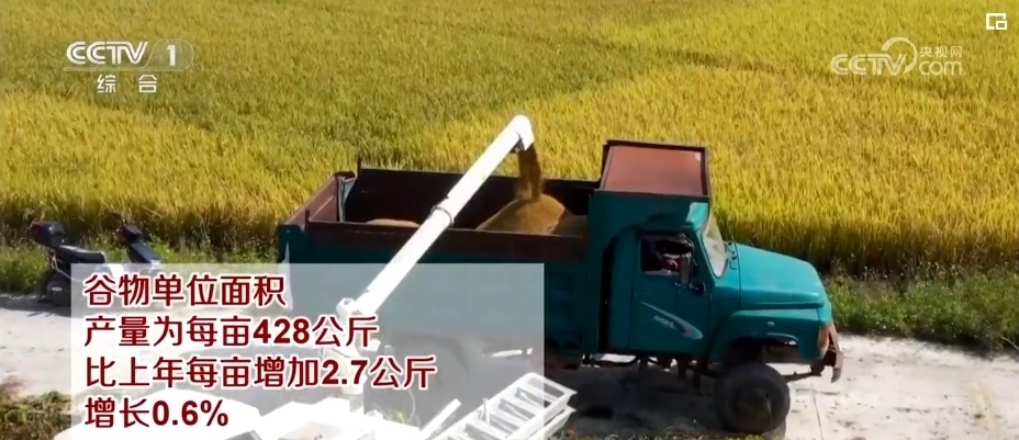 2023年,全國(guó)糧食單位面積產(chǎn)量為每畝390公斤,比上年每畝增加2.9公斤,增長(zhǎng)0.8%。其中,谷物單位面積產(chǎn)量為每畝428公斤,比上年每畝增加2.7公斤,增長(zhǎng)0.6%。