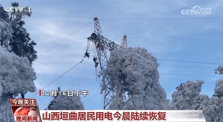 寒冬里,有人選擇向寒風(fēng)逆行,用自己的堅(jiān)守給千家萬(wàn)戶(hù)送去溫暖。13日傍晚,受降雪降溫天氣影響,山西省運(yùn)城市垣曲縣的4條輸電線(xiàn)路發(fā)生故障,導(dǎo)致全縣停電。經(jīng)過(guò)70多個(gè)小時(shí)搶修,截至12月17日7點(diǎn),受雨雪冰凍災(zāi)害影響的山西12座變電站已全部恢復(fù)供電,垣曲當(dāng)?shù)鼐用裼秒娨仓鸩交謴?fù)。