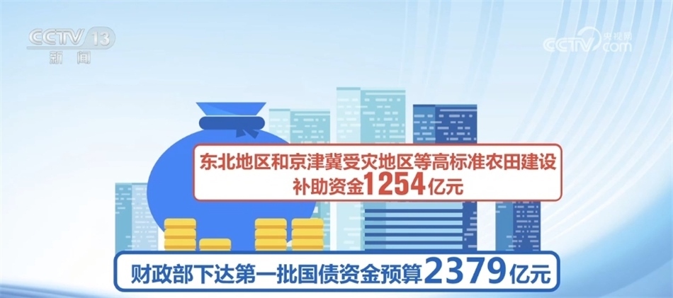 央視網(wǎng)消息:今年四季度中央財政將增發(fā)1萬億元國債,專項用于支持災(zāi)后恢復(fù)重建和提升防災(zāi)減災(zāi)能力。不久前,由國家發(fā)展改革委、財政部會同相關(guān)部門建立的增發(fā)國債項目實施工作機制已經(jīng)確定第一批項目清單。記者從財政部最新了解到,第一批國債資金預(yù)算2379億元已經(jīng)下達。