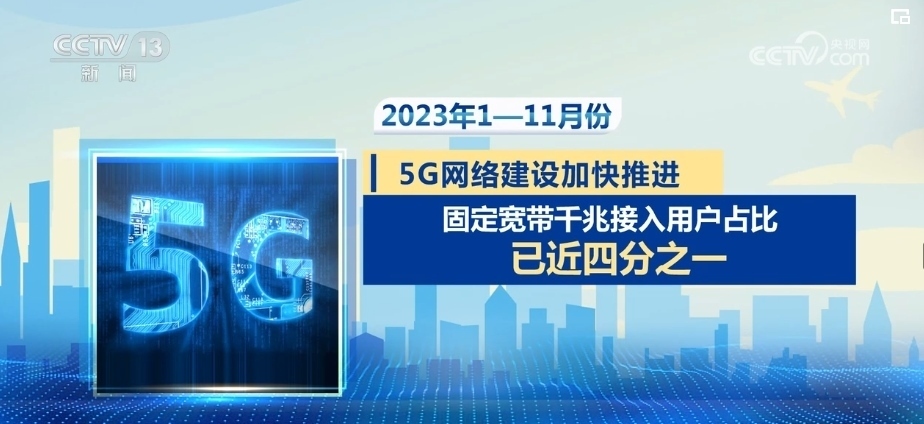 央視網(wǎng)消息:工業(yè)和信息化部數(shù)據(jù)顯示,2023年1—11月份,通信行業(yè)保持平穩(wěn)運行。5G、千兆光網(wǎng)等新型基礎(chǔ)設(shè)施建設(shè)加快,電信業(yè)務(wù)總量較快增長。